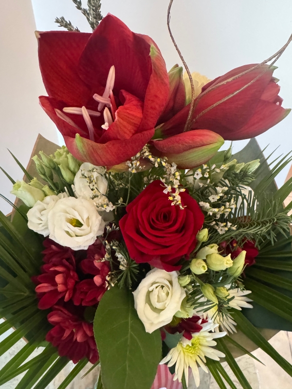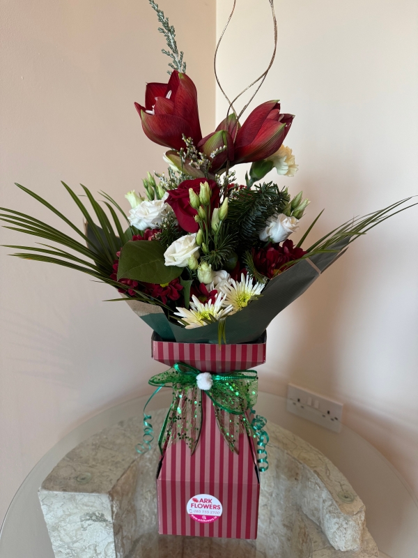 A mixture of stunning fresh flowers in all Christmas colours that will bring so much joy to any home.